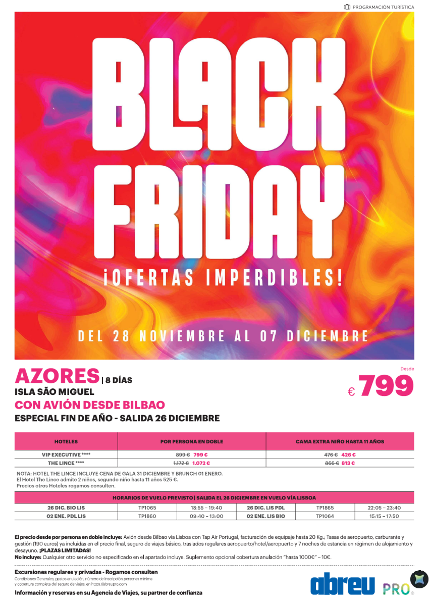 Black Friday ultimas plazas Azores Fin de Año desde Bio salida 26 Dic 799 € pvp final